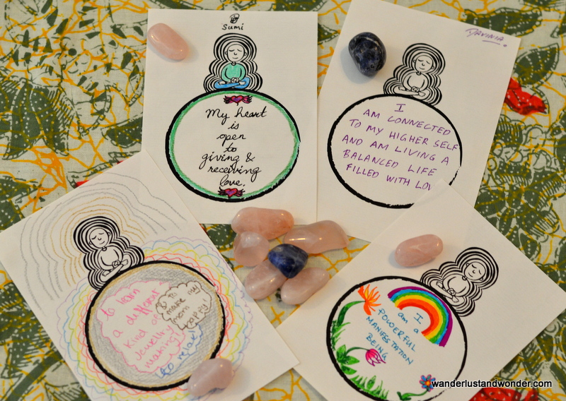 We began by taking a few moments to write down our intention in making the piece. By writing down a personal affirmation and remaining centered on it throughout the process, it becomes a part of the mala much like the beads themselves.