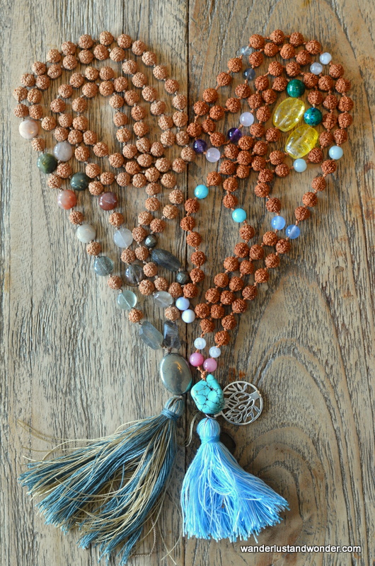 Malas are essentially a tool used in meditation or prayer. For Buddhists, with each of the approximately 108 beads in the mala you repeat your mantra. Personally, when I meditate I don’t use a mala, but I do find them useful as a daily reminder to stay present and engaged in the now. This is what I hoped to encourage in Ava.