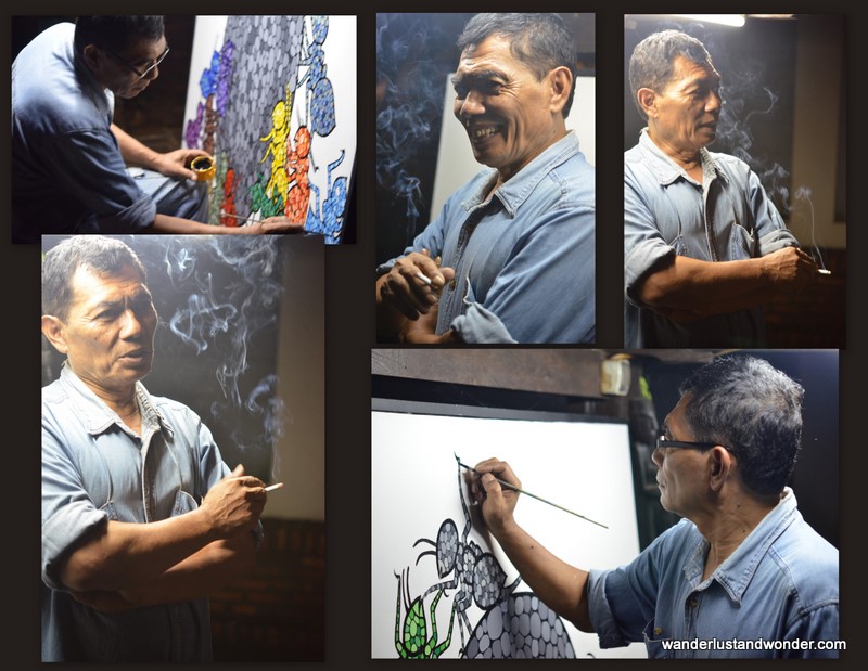 Priyanto, who is Museum Layang Layang’s resident artist, focused on lighter subject matter for his work . Inspired by nature, the acrylic painting depicted ants working communally to convey the notion of “Gotong Royong” (working together).  This work too spoke of the human condition, here articulating that by working together for a common good, much can be accomplished.