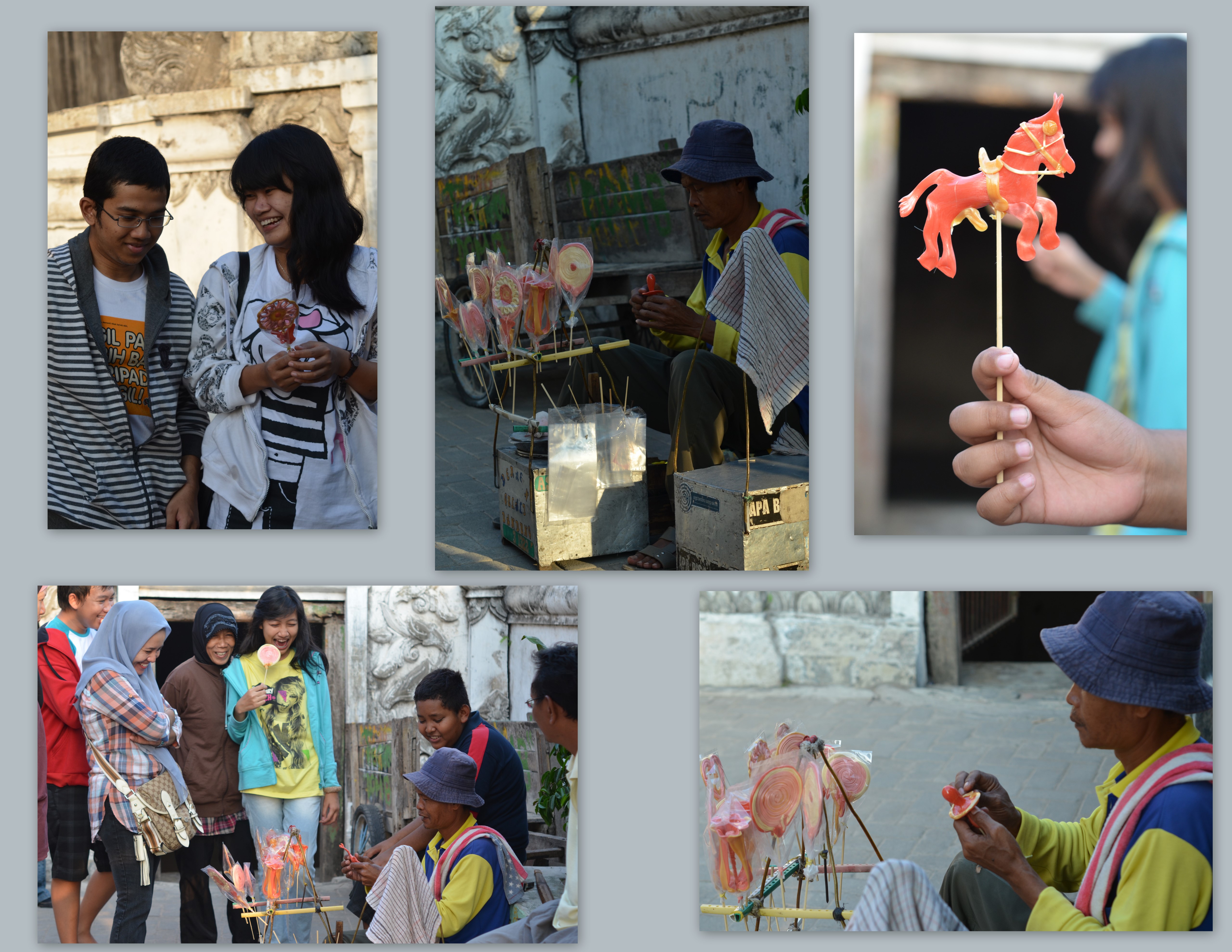 What a great experience you had! I had no idea that you visited Jogja recently! The photos show that you made a right decision to follow the lady who told you she could show you a better view. :) The underground mosque photos are beautiful. Very lovely! The candy vendor story is funny. Whatever customer wants.