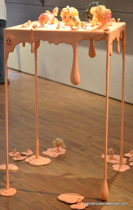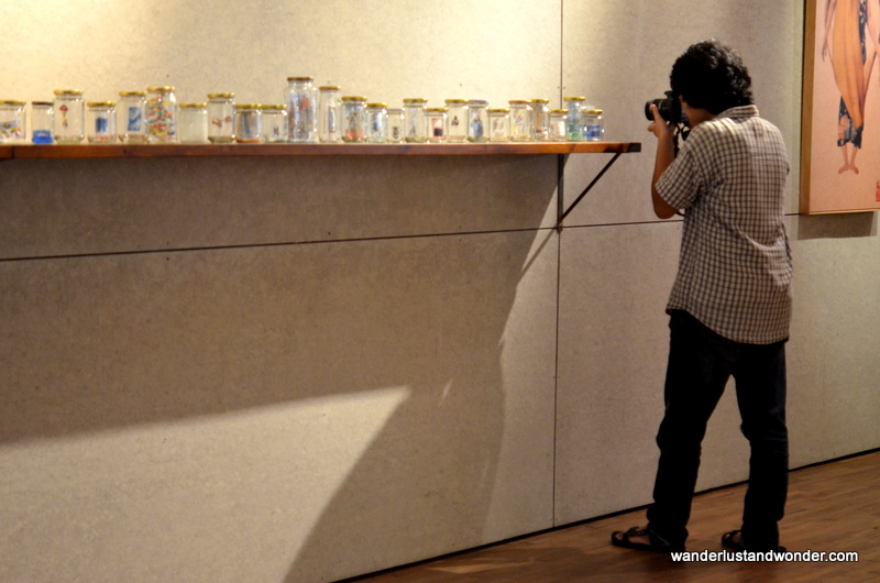 Inside the gallery there was an enticing exhibit featuring mixed media works and art installations. Natasha Tontey’s Rhyme Stew looked like a creepy melting-pot of childhood playthings, while Angela Judiyanto’s installation, A Little Encounter, featured a collection of glass jars with quiet narratives painted tableaux-style on their interiors.