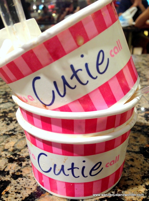You may be thinking that OMG stands for the ubiquitous phrase, “Oh My Gosh.” You would be wrong on that point, as it actually stands for the much less appealing, but more amusing slogan, “Ooh My Gas.” Aside from the full name, the sizing too is a little off kilter as the two sizing options are Cutie (small) and Sexy (large). It could just be me, but there is something a little weird about ordering a five year old a “sexy” ice cream. Luckily that was not a bridge I had to cross as Cutie size was just perfect for us.